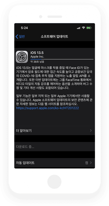 지금까지 애플 아이폰 iOS13.5 업데이트에 관련된 내용을 알아봤어요. 큰 변화는 없지만 불편했던 페이스아이디의 개선만으로 만족스러운 업데이트였어요.