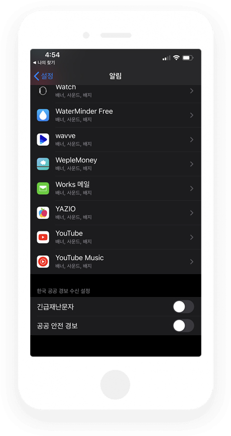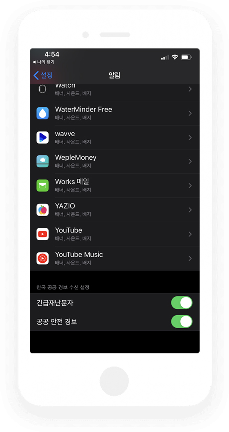 - 긴급재난문자와 공공 안전 경보를 끄기