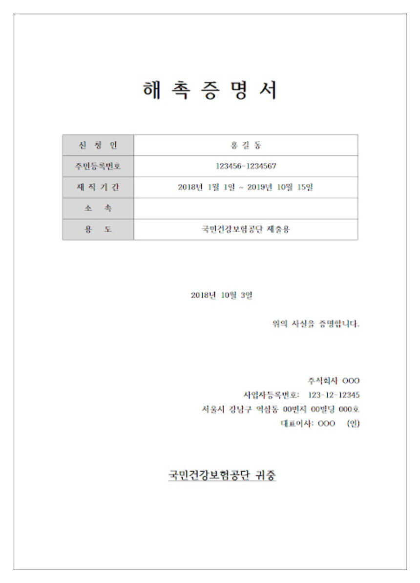 해촉증명서는 개인사업자 성격의 프리랜서로 분류된 이들의 소득이 일회적임을 증명하는 서류라고 해요. 한마디로 급여를 지급한 업체와 거래 관계가 종료됐다는 사실을 증명하는 것으로 건강보험공단에 해촉증명서를 제출하면 과하게 납부된 건보료와 장기요양료를 환급받을 수 있다고 해요. 해촉증명서 양식은 인터넷에서 쉽게 구할 수 있는데, 중요한 점은 거래한 업체의 직인을 받아야 인정받을 수 있다고 해요.