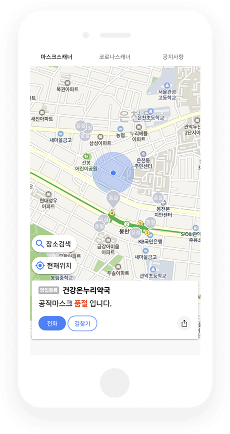 스마트폰으로 코로나19를 예방하는 마스크와 신천지의 위치를 알고싶은 분들에게 추천합니다.