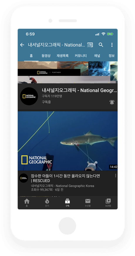 자연 다큐멘터리를 좋아하는 분들에게 최고의 채널이예요. 세계적으로도 유명한 내셔널지오그래픽은 1888년부터 현재까지 130여년 동안 학회지와 교양지로 시작해서 영상 다큐와 방송까지 최고의 다큐멘터리를 제작하고 있어요. 매달 세계 탐험, 문화, 시사문제, 동물, 역사 등 다양한 주제를 다루는데 유튜브에서도 영상을 볼수 있어요. 세계적인 명성답게 고화질의 아름다운 영상과 흥미로운 내용들이 담겨있는데 특히 자연다큐는 시간가는줄 모르고 보면 24시간이 모자를수도 있어요.