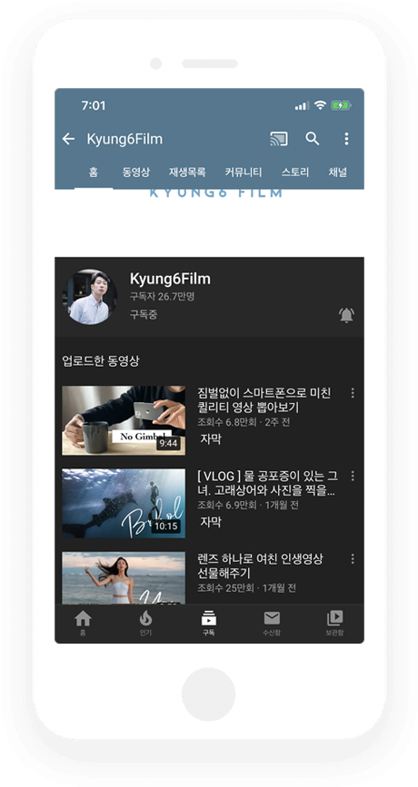 장르 : 필름메이커 및 vlog, 구독자 : 26만명