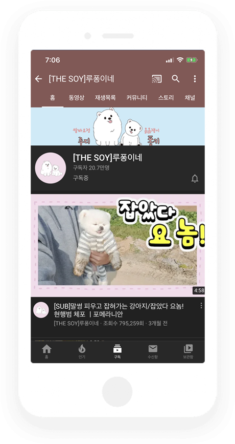 많은분들이 랜선 집사로 동물 vlog를 보고있어요. 그중에 저는 루퐁이네라는 강아지 채널을 즐겨보고 있어요. 포메라니안인 루디와 퐁키의 일상생활을 자극적이지않고 짦은영상위주로 담백하게 담아내어서 편안하게 시청할수 있어서 좋아요. 같은 포메라니안이지만 성격이 정반대인 루디와 퐁키를 지켜보는 재미와 목욕, 간식만드는 장면, 산책 등을 보면 어느새 미소가 지어지는 채널이예요.