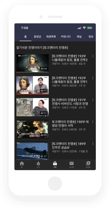칙칙하고 재미없을거 같은 국방tv채널의 한 코너인 토크멘터리 전생사는 어려운 역사를 전쟁이라는 키워드로 재미있게 설명하는 채널이예요. 진행자 허준님과 윤지연 아나운서님, 임용한 박사님과 이세환 기자님의 설명과 해설로 인류역사를 예능같은 느낌으로 재미있게 진행하는데, 특히 오랜기간 호흡을 맞춰서 서로간의 케미가 정말 좋아요. 교과서에 담지 못하는 이야기와 전문서적에서 어렵고 지루한 역사를 재미있게 알수있는 토크멘터리 전쟁사를 추천해요.
