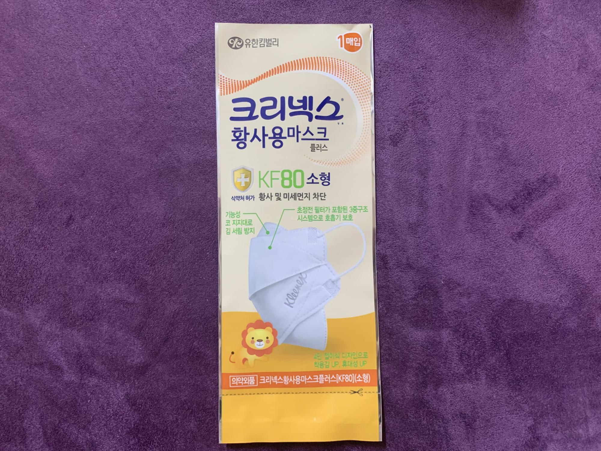 아동은 ‘KF80 황사용’ 마스크를 구매했어요. 유한킴벌리 제품이고, 사이즈는 소형, 2023년 2월24일까지 사용할수 있어요.