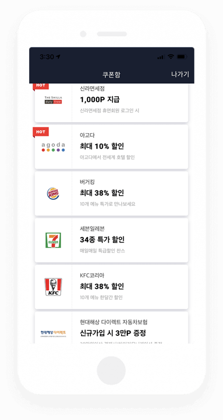 쿠폰함은 페이코(PAYCO)에서 제휴된 쿠폰을 소개하는 메뉴로 원하는 쿠폰을 다운받아서 사용할 수 있어요. 개인적으로 가끔 패스트푸드나 편의점 쿠폰을 사용하고 있어요.